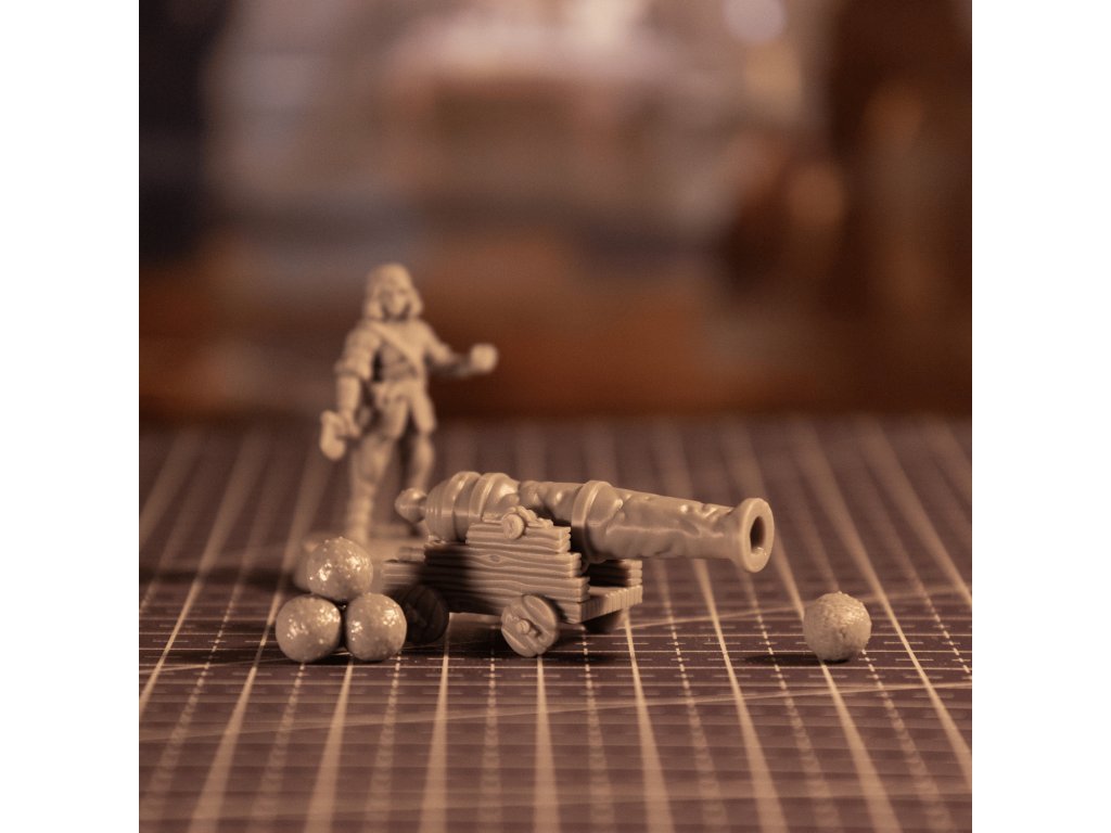 Součástí balení je hromádka dělových koulí a jedna samostatná koule pro efektní rozmístění na scéně. Dokonalý prvek pro námořní bitvy, pirátská dobrodružství i epické obléhání.