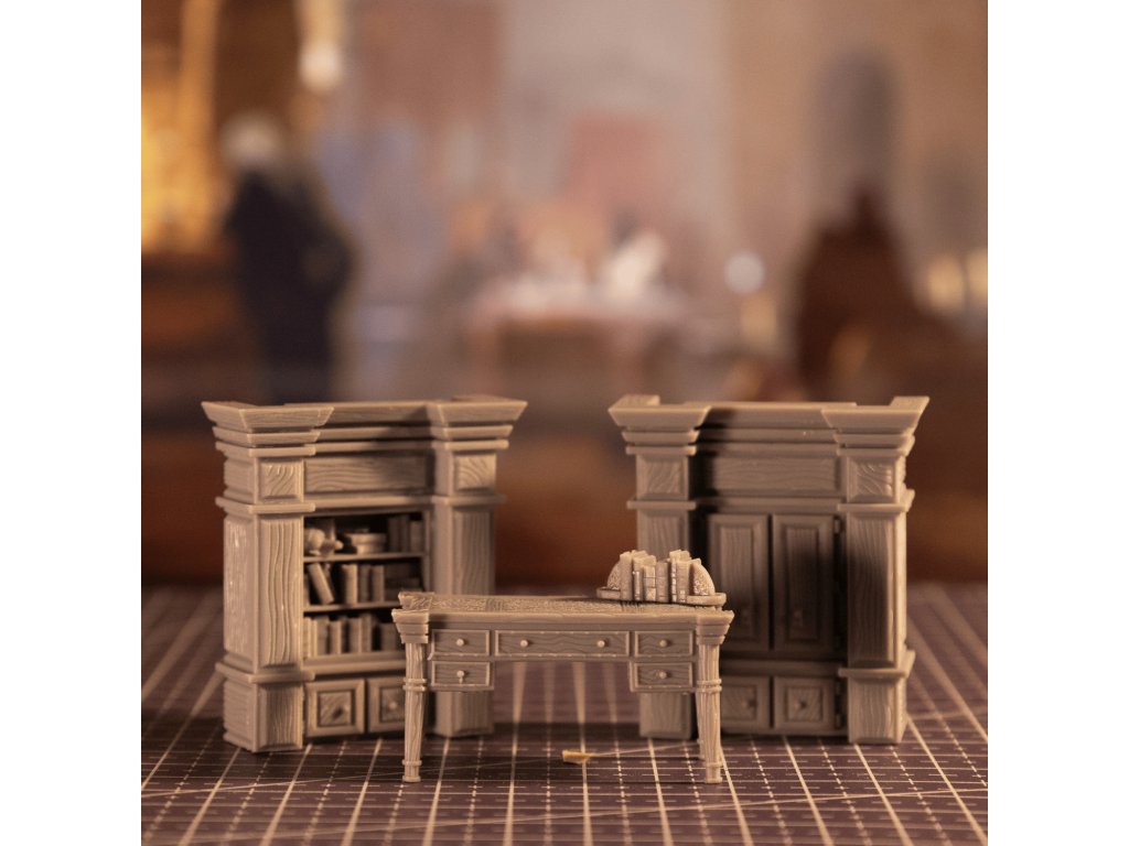 V nabídce najdete knihovny, skříně, psací stoly a knihy, všechny s precizními detaily a realistickými proporcemi.