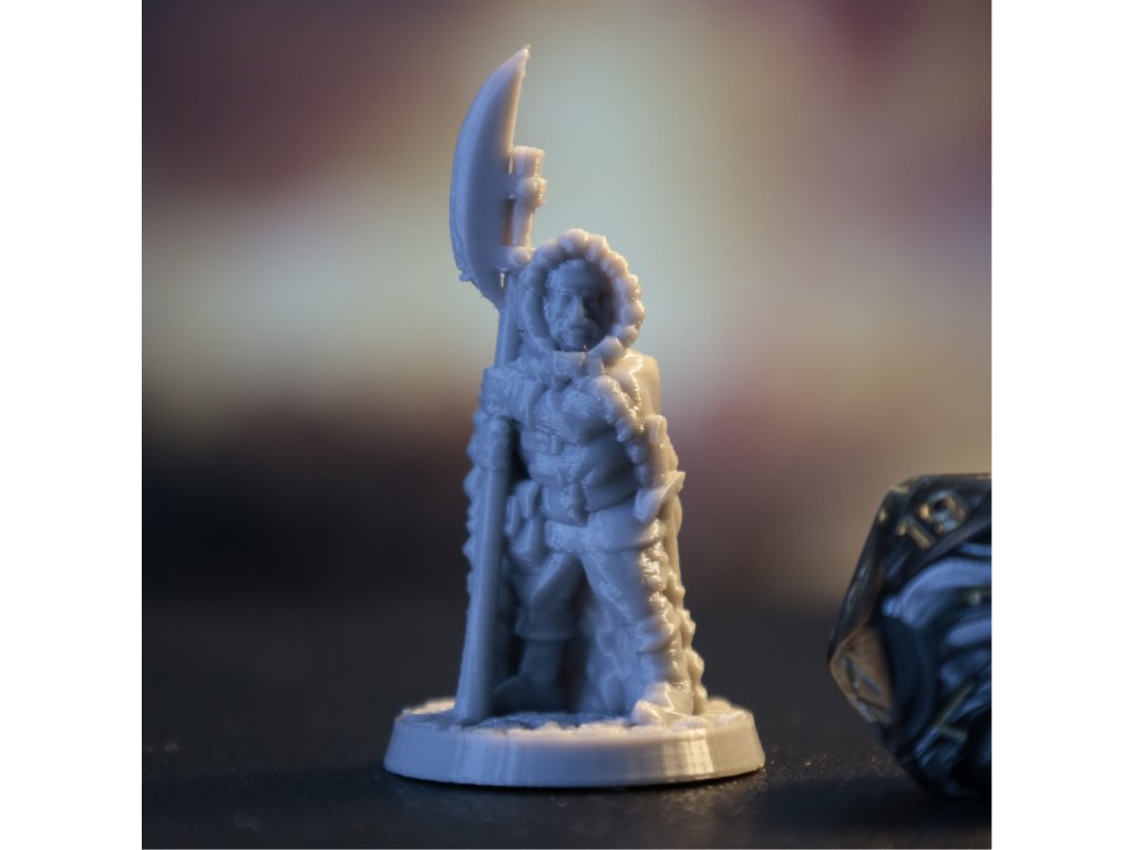 Mohutný válečník připravený čelit jakémukoliv nepříteli. Skvěle se hodí jako severský bojovník, strážce průsmyku nebo elitní člen válečné družiny v drsných fantasy světech.