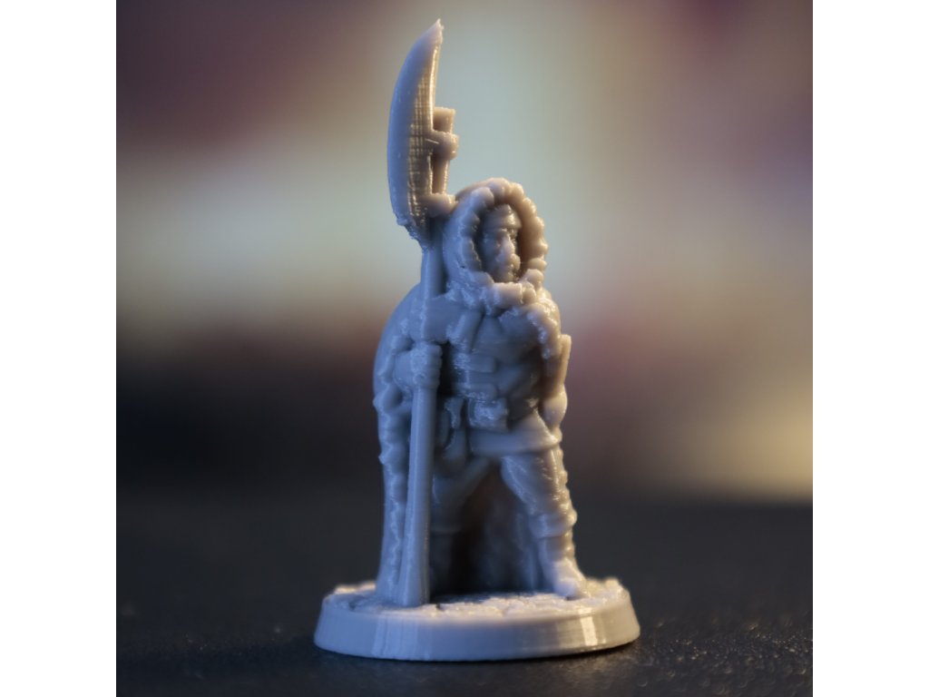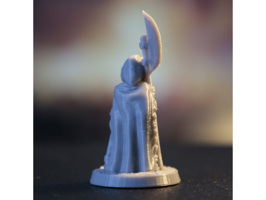 Ve srovnání s resinovým tiskem je třeba počítat s nižší úrovní detailu – jemné struktury a ostré hrany mohou být méně výrazné a na povrchu mohou být patrné tiskové vrstvy. Figurky jsou primárně určeny pro hraní, testování armád a rozsáhlejší herní sestavy, nikoli pro výstavní nebo sběratelské účely.